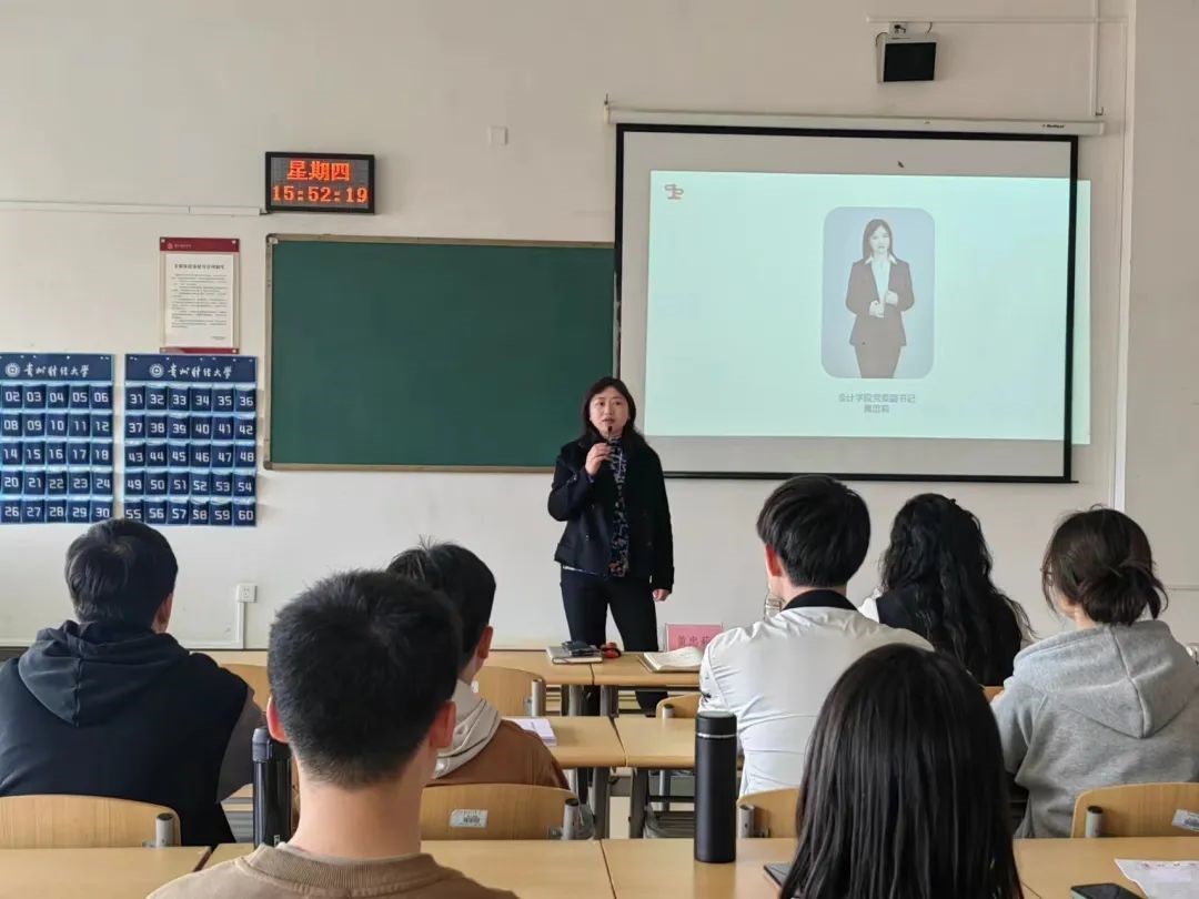 之后,联合会指导老师杨晓华对新学期的工作方向进行交流分享。她指出联合会的定位应该是学术型研会,联合会成员们需要始终保持对知识和学术研究的热情和渴望,精益求精,不断引领同学们追求更高水平的学术成绩;在工作中不怕困难,不惧挑战;同时要扛起员工干部应有的责任和担当。