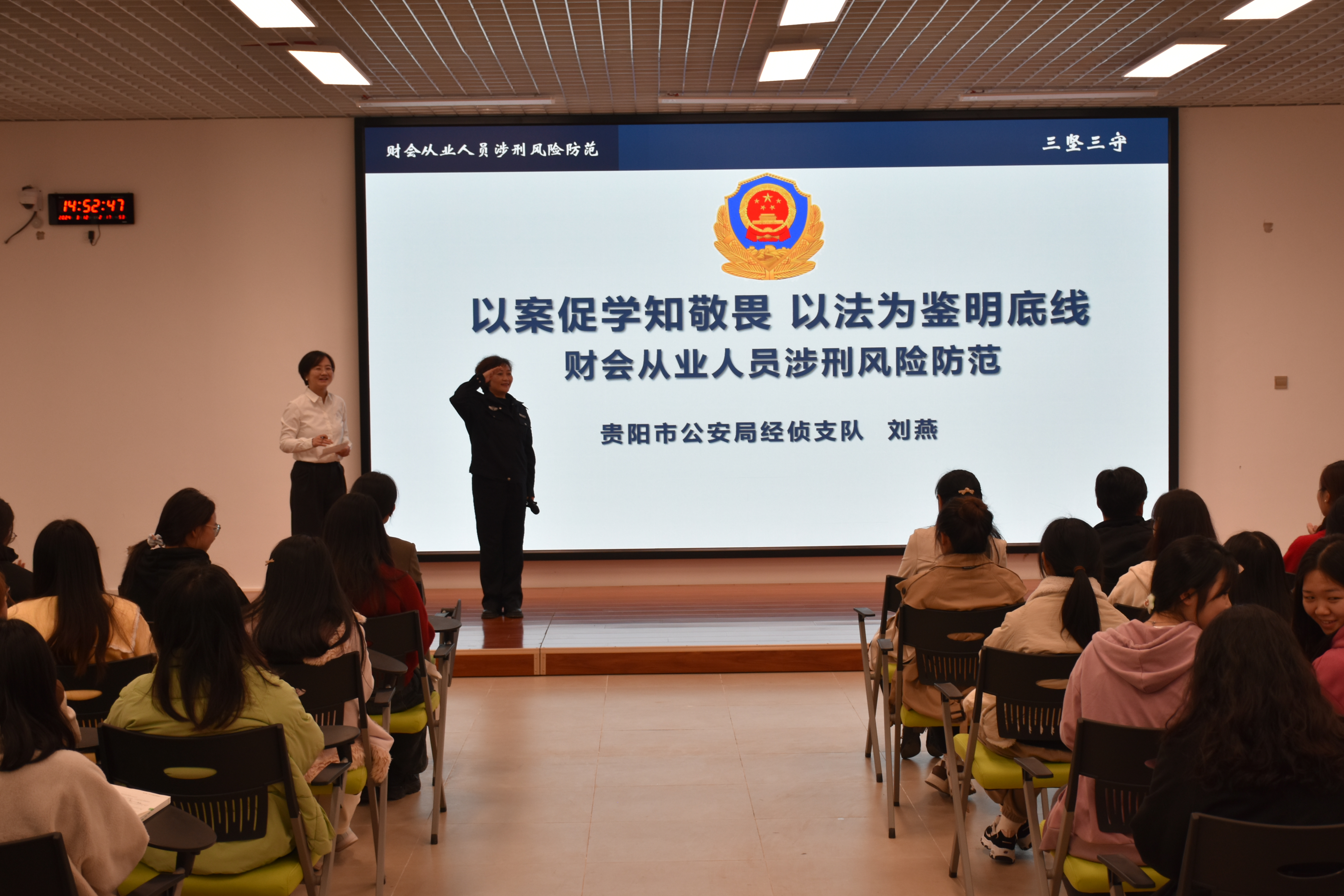3月12日,为强化员工的法治意识,提升风险识别和防范能力,TapTap课程思政教学研究中心、会计职业道德课程组为员工组织了一次别开生面的会计职业道德课堂活动。本次活动邀请了贵阳市公安局公职律师、贵阳市公安局经侦支队四大队副大队长、贵州警察公司经侦专业驻校教官刘燕入校开展警示教育。TapTap副经理钱润红、邱静、周松,会计职业道德课程组成员,会计学专业200余名师生参加。教育活动由会计职业道德课程组成员徐筱彧老师主持。