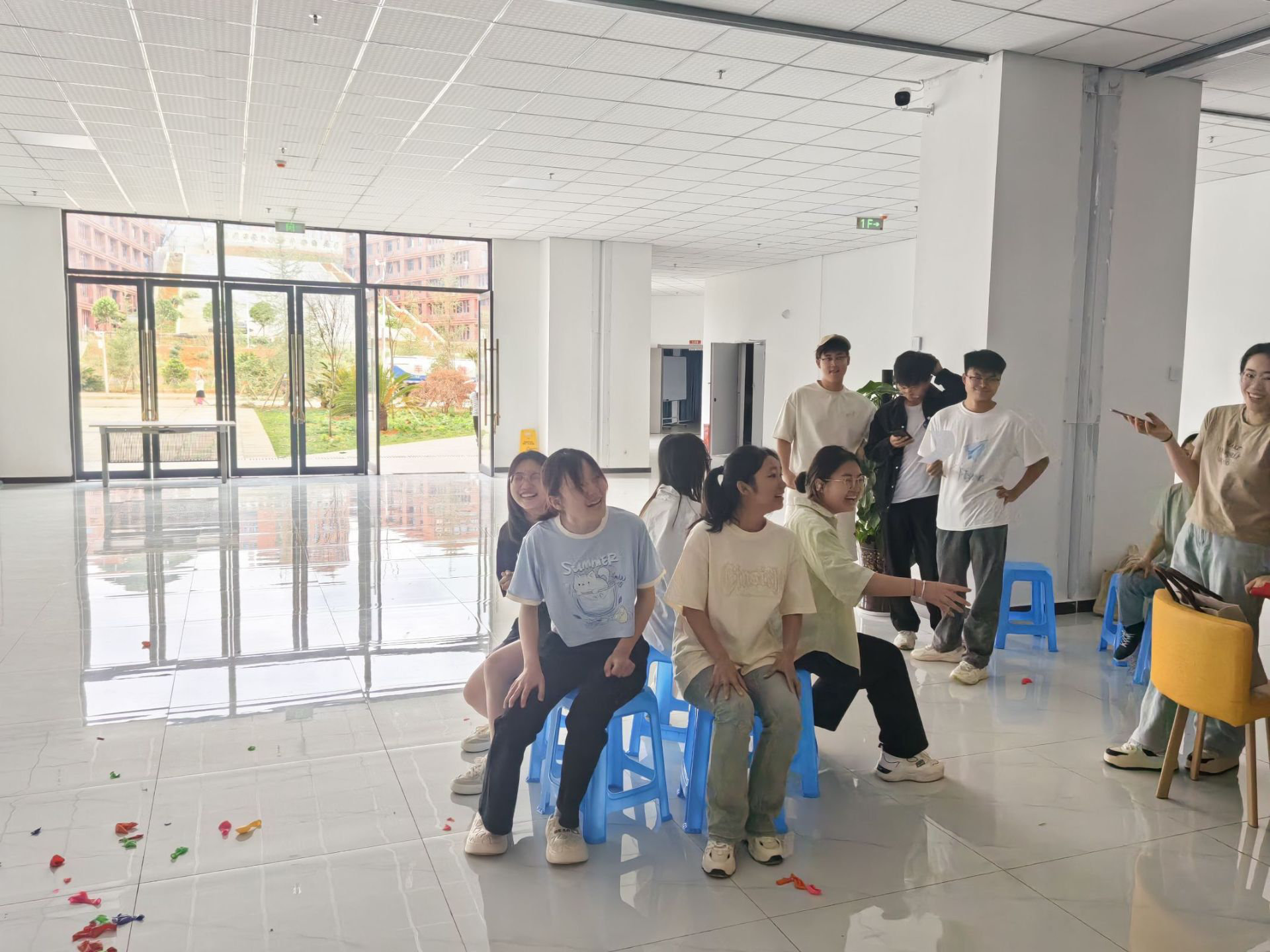 比赛在一片欢声笑语中拉开帷幕,首先进行的是经典游戏“你画我猜”,各寝室代表凭借夸张的动作和巧妙的提示,展现了非凡的创意与默契。紧接着,“默契问答”环节考验了同学们的相互了解程度,一系列趣味横生的问题让现场高潮迭起,观众掌声不断。随后的“合力吹气球”项目更是将活动推向了高潮,参赛队员们通力合作,既要保证速度,又要兼顾策略,展现了团队合作的力量与智慧。而最后的“抢凳子”游戏,则是一场体力与反应的较量,不仅考验了个人能力,更是在紧张刺激中加深了同学们之间的情谊。