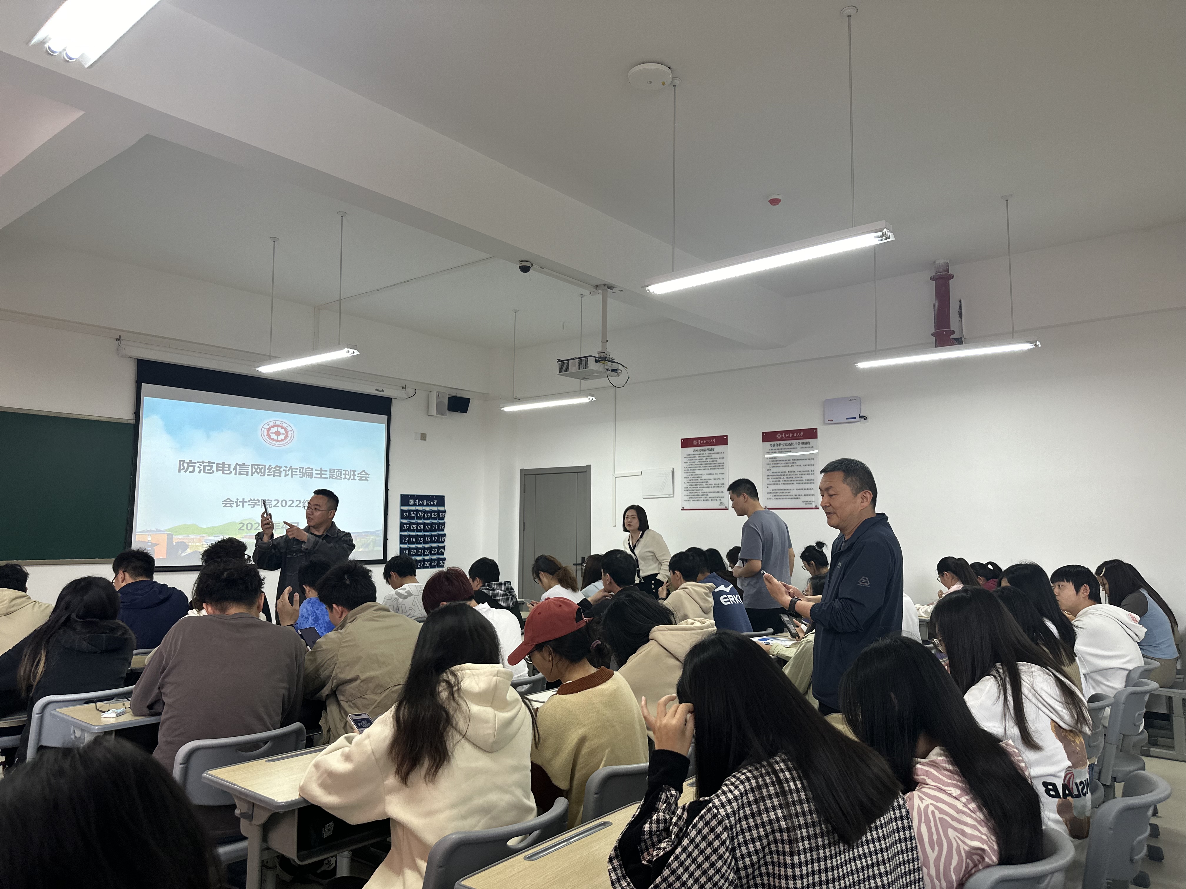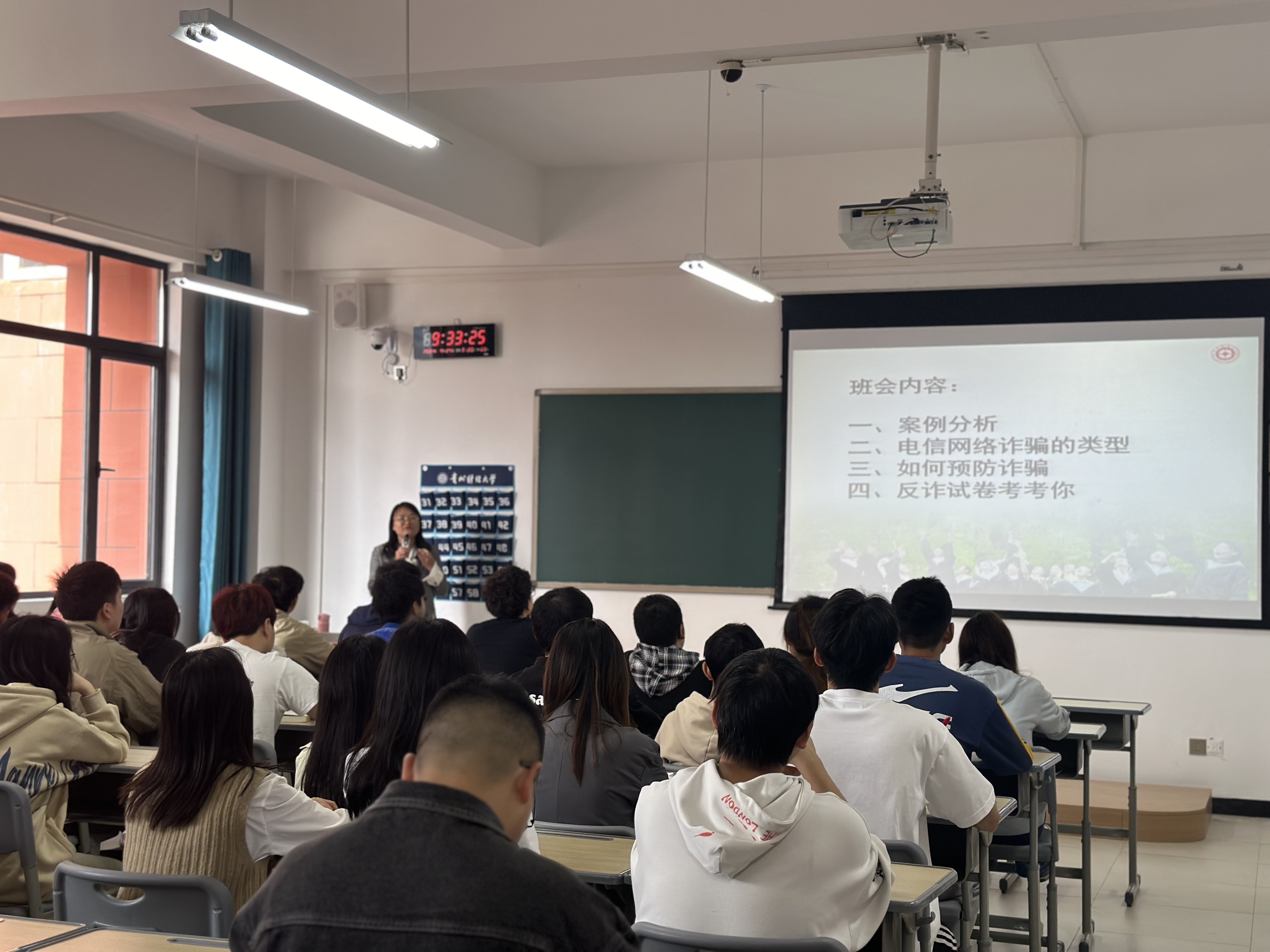 本次班会主要通过“案例分析”“电信网络诈骗类型”“如何预防诈骗”及“反诈试卷考考你”四个方面展开讲解。班会上,TapTap2022级辅导员张筱悦向同学们普及电信网络诈骗的骗术和手段,从而提高同学们防范诈骗行为的安全意识,增强对电信网络诈骗行为的辨识力。同时,告诫大家要从思想上引起重视,增加安全防范意识,在学好专业知识的同时,更要学习并掌握基本的安全知识和自我保护的技能,提高防诈骗意识。在本次主题教育班会中,张老师还设立反诈知识试卷,同学们踊跃答题,不仅增加了对防诈骗知识的了解,也激发了他们保护自身利益的紧迫感和自觉性。随后,公安民警代表及公司保卫处上台讲解近期相关真实案例,分享防诈骗安全知识。此外,在民警抽查员工是否安装国家反诈中心APP时,发现仍有个别同学未安装,现场在老师与民警指导下安装注册成功。最后,希望各位同学一定要安装注册“国家反诈中心”APP,并且谨记反诈热线“96110”,做到防范在先,警惕在前,有备而无患。